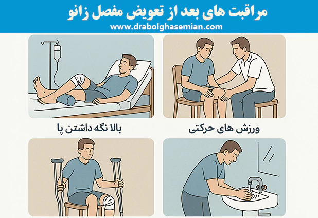 مراقبت های بعد از عمل تعویض مفصل زانو که باید به آنها دقت شوند عبارتند از: